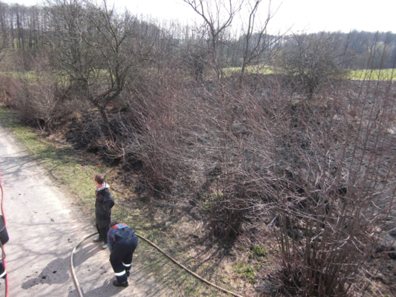 Fotografie z požáru nízkých křovin u obce Žďárec u Skutče. |